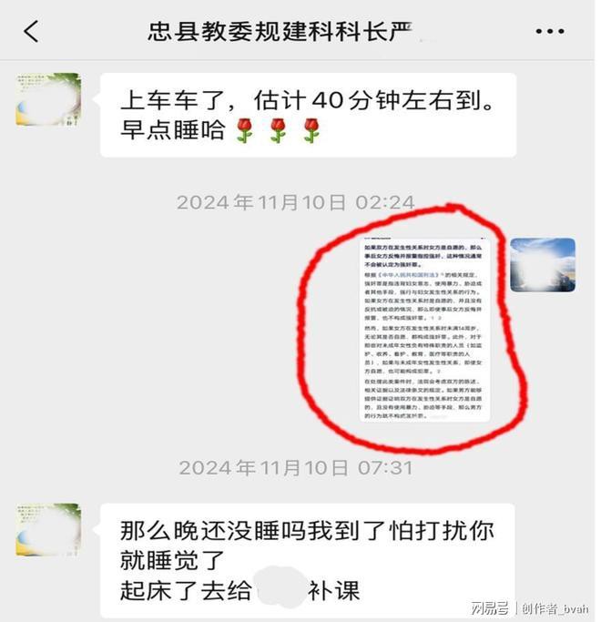 导语:2024年11月10日凌晨,一张包含 "刑法强奸罪规定" 的截图,打破了忠县教委规建科科长严某与装饰从业者韦小兰(化名)之间持续两年的暧昧关系。几个小时后,520元的微信转账记录,成为这段关系走向破裂的又一证据。从"想文文哒" 的亲昵称呼,到法庭上的1.5万元调解补偿,这起看似普通的情感纠纷,因涉事者的公职身份和特殊金额转账,引发了人们对党员干部道德约束与情感纠纷法律边界的关注。